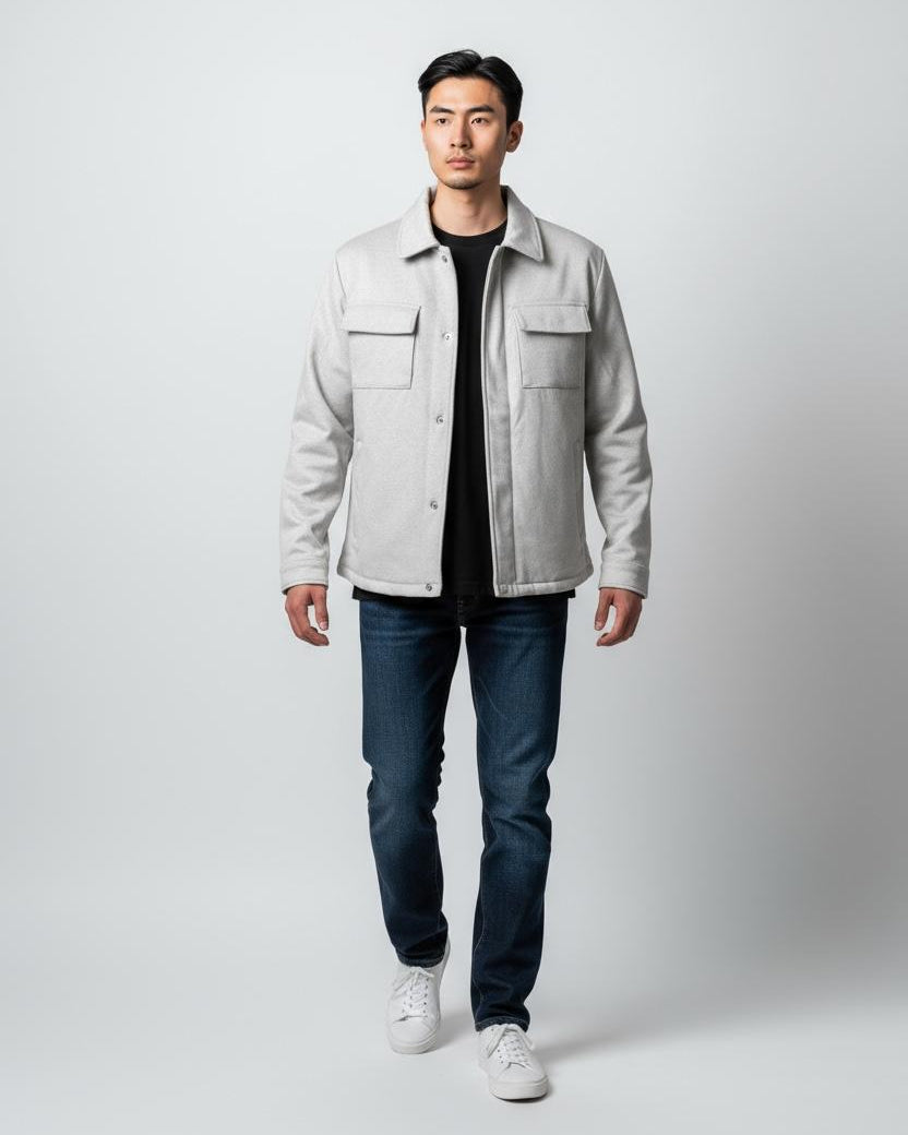 Meet the Wool Utility Jacket—the perfect blend of rugged functionality and refined, modern style. Designed to be your go-to layer, this jacket is built for comfort, warmth, and versatility across seasons.