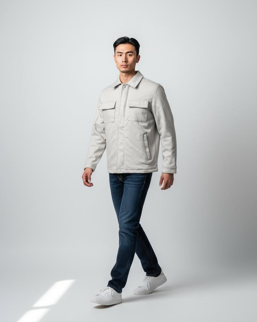 Clean Collar Design: A sharp, traditional shirt collar that allows the piece to be dressed up or down effortlessly.