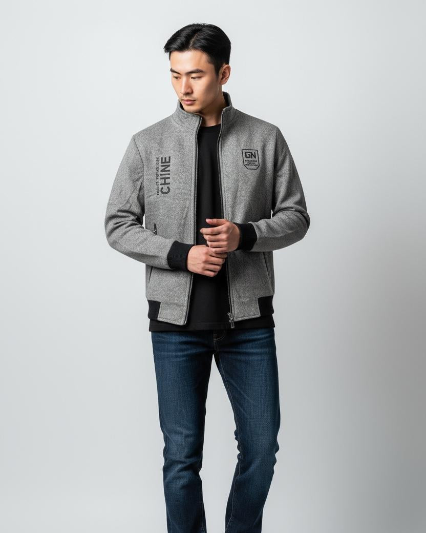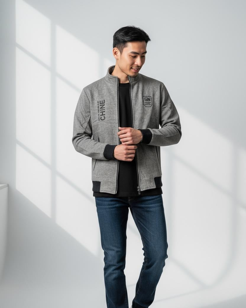 Crafted from a premium, dense wool-like fabric, this jacket offers exceptional warmth and a structured feel without the weight. The slightly heathered texture adds visual depth, giving it a sophisticated, high-end look that stands out.