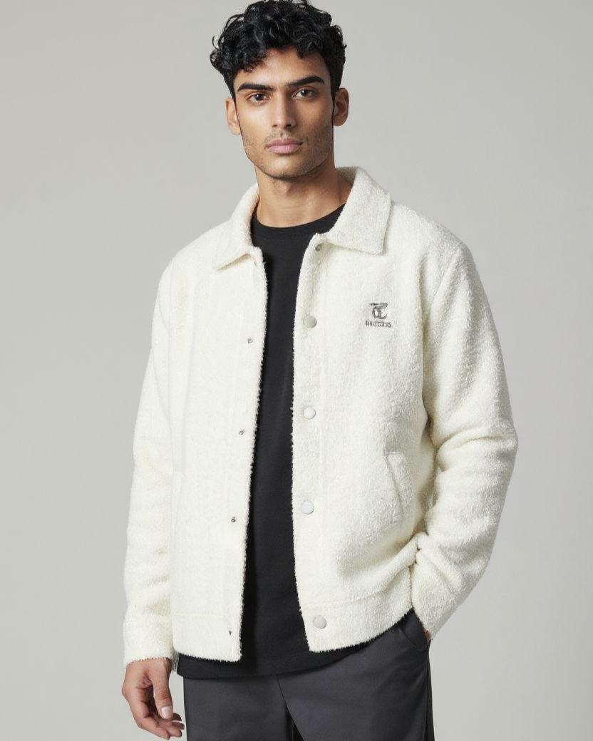 Elevated Texture: Crafted from a rich, fuzzy knit fabric, it offers unmatched softness and depth of texture, setting it far apart from standard cotton or nylon jackets.